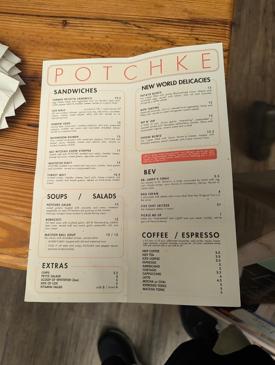 Customers rave about the delicious Whitefish Bialy and the hearty Farmer Frittata Sandwich. The atmosphere exudes warmth and charm, complemented by friendly service. For those with a sweet tooth, don’t miss the delightful Cinnamon Babka Loaf and creative pastries. Whether you're dining in or taking out, Potchke Deli offers an unforgettable experience that will keep you coming back for more.